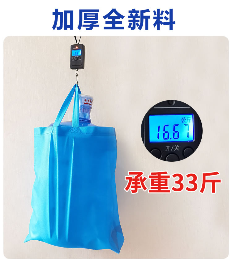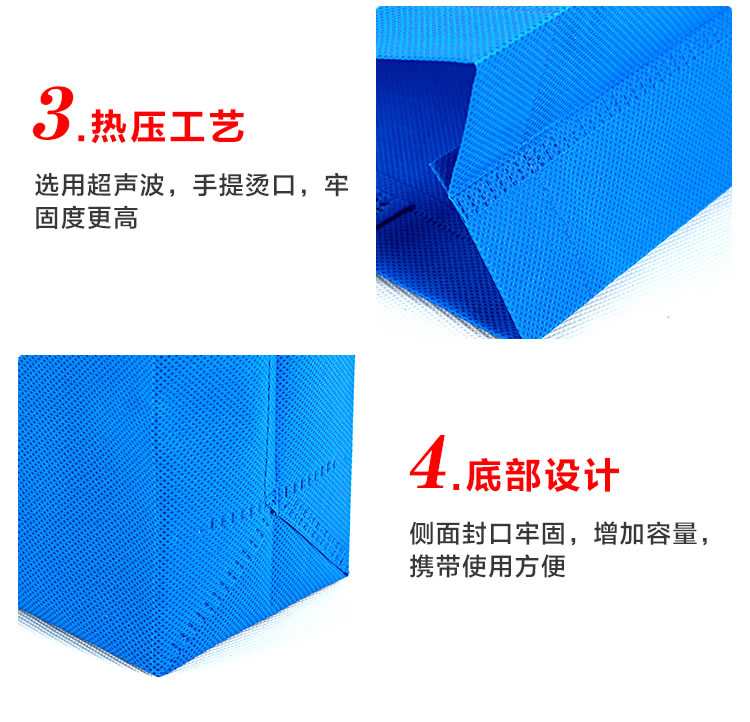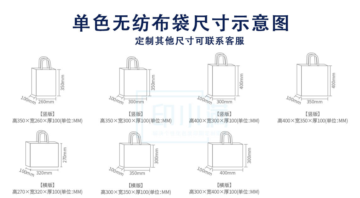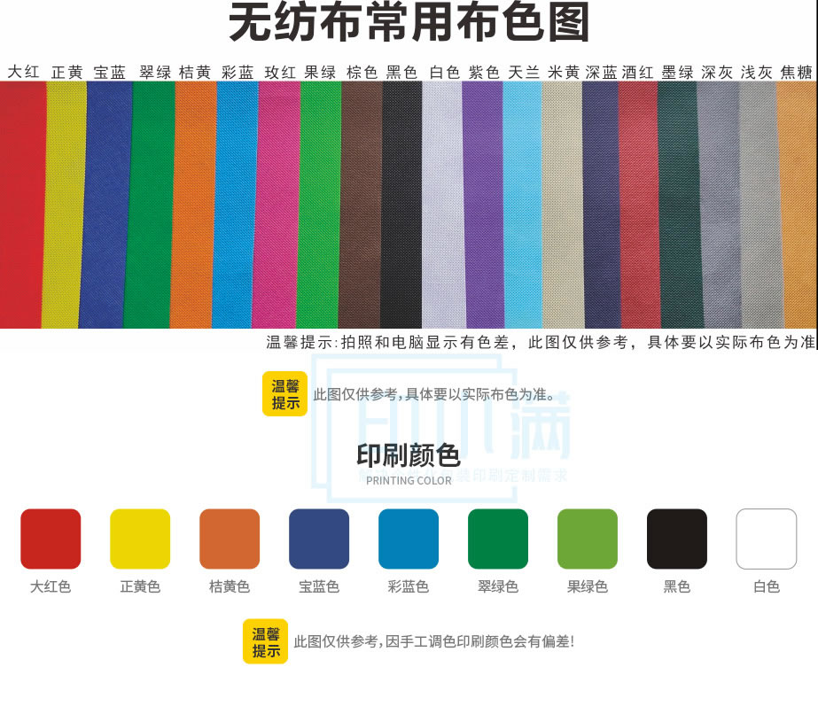 | 材质 | 单色无纺布袋常用80克新料有侧有底,以上为常用爆款尺寸,其他尺寸可联系客服定制,也有100克新料更厚 | ||||